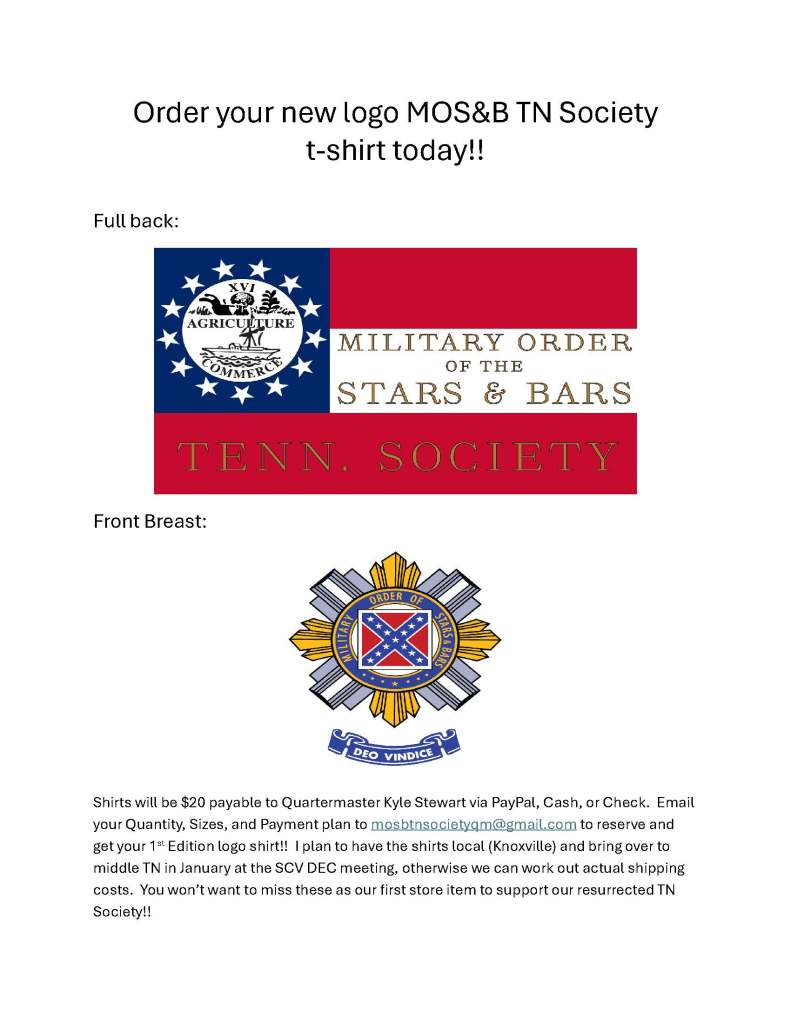 Find us on Facebook at: Tennessee Society Military Order of the Stars and Bars