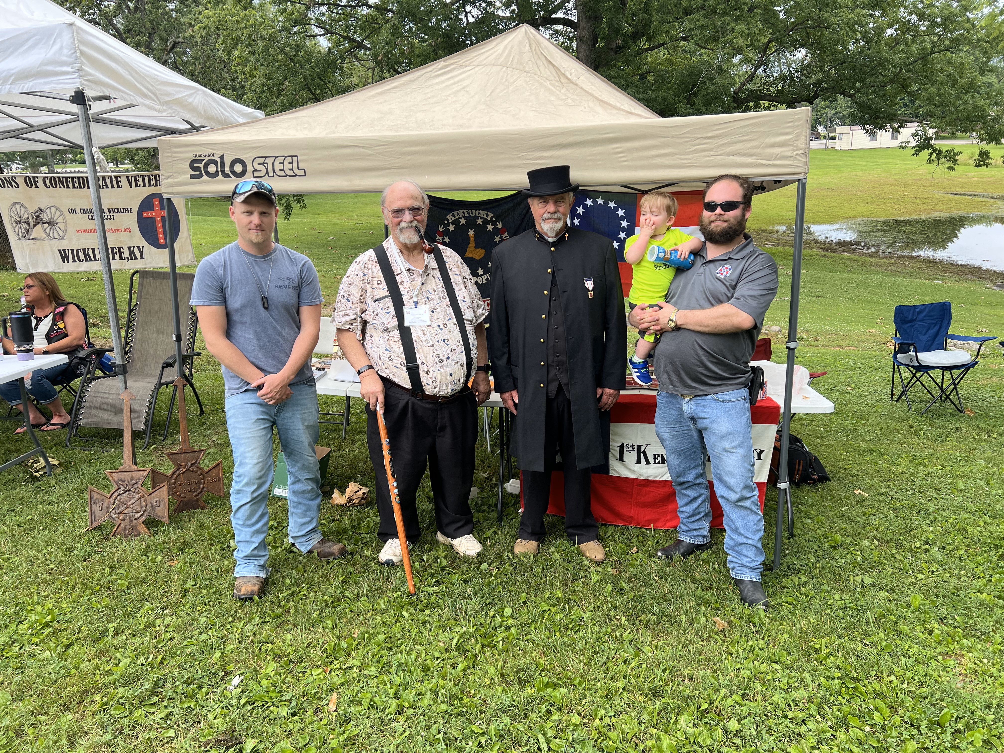 Quarles Brigade Chapter 319 Members at the Centennial observance of the dedication of the President Jefferson Davis Birthplace Monument at Fairview, KY.